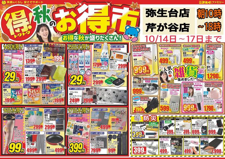 4/15日火曜日からの特売チラシ 弥生台、芹が谷店合同です。 お散歩がてら是非お出かけください♪