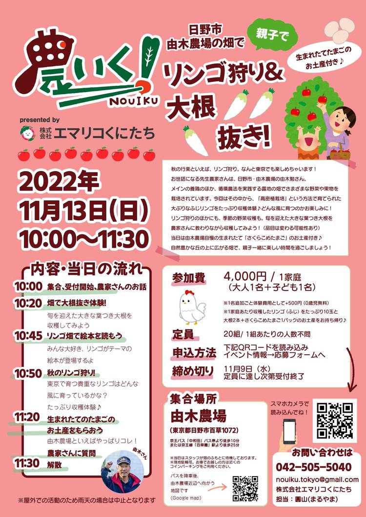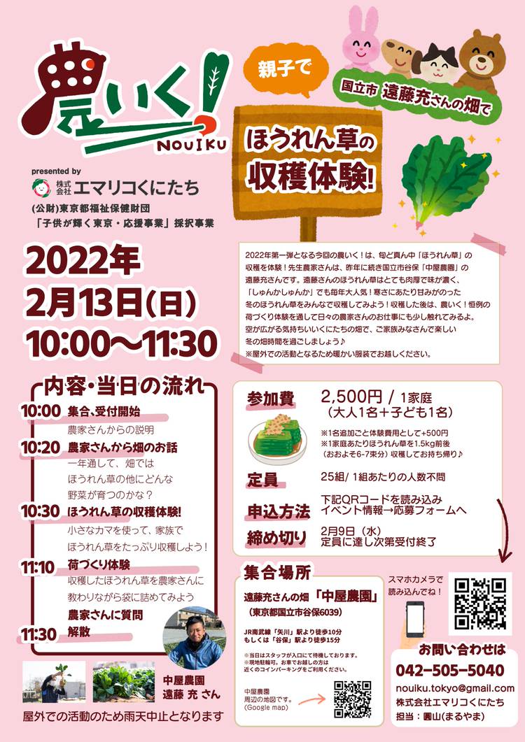 【農いく!親子向け農体験イベントのお知らせ】 2月26日(日)の1day体験は・・・ 立川市の畑で「親子でいちご狩り&エディブルフラワーの収穫体験!」🍓🌼🍓🌼 お世話になる先生農家さんは、立川市・あみちゃんファームの網野信一さん♩ これまで、貴重な東京産エディブルフラワー(食用花)をメインにされてきた網野さんが、今年度新たに建てたハウスで始めたのがいちごです🍓✨ 地産地消ならでは、...