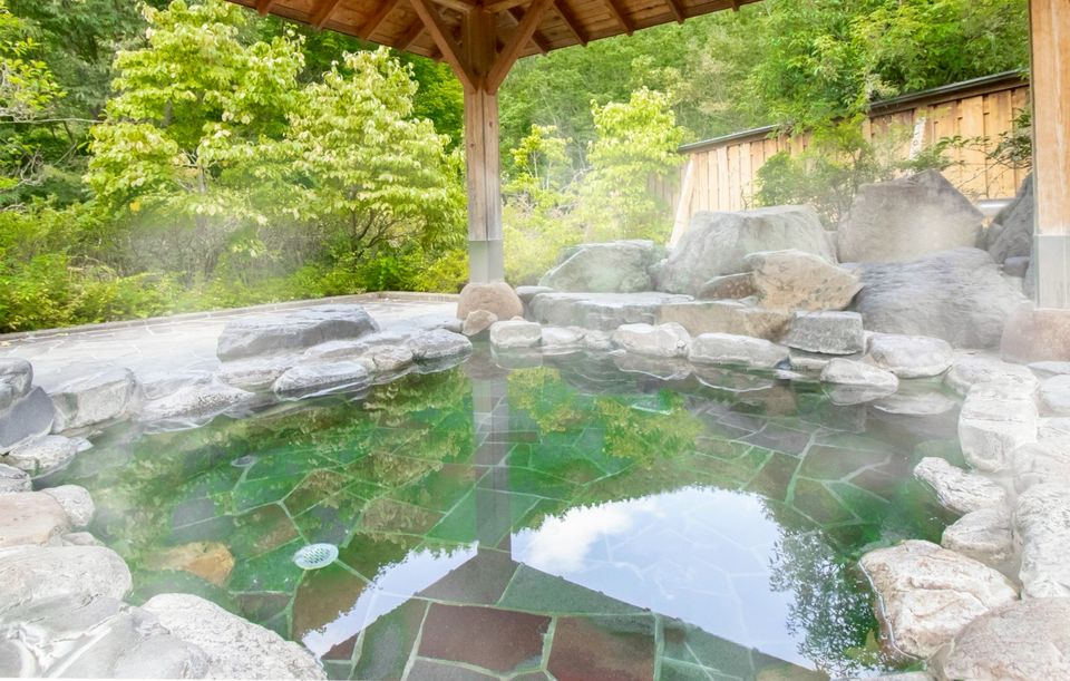 pH値9.91の強いアルカリ性の泉質と、源泉浴槽は泉温約35度のぬるい温度であるため、長時間ゆっくり入浴でき、高いリラックス効果が期待できます。 アルカリ性の温泉は、角質を軟化させ肌がスベスベつるつるになるため、女性から特にご好評をいただいております!