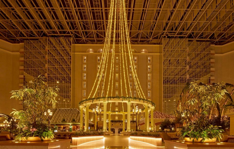 国内最大級、4,300㎡の広さと37mの高さを誇る、9層吹き抜けの空間に、チャペルやレストラン、ショップが並びます。