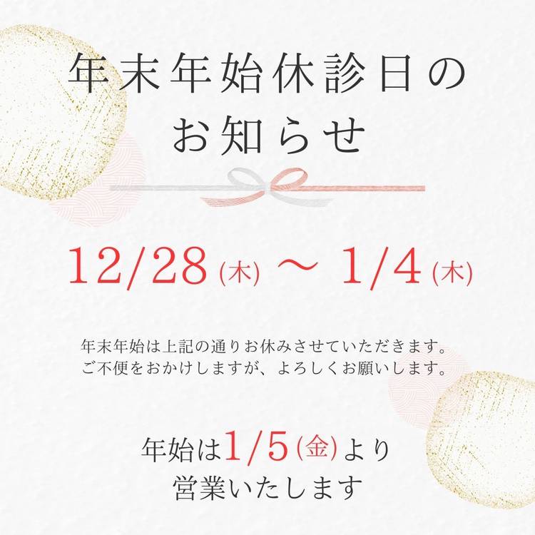 🎄12月営業日のお知らせ🎄 いつもご利用いただきありがとうございます! スタッフ毎のご予約受付開始時間を載せております! ご確認ください🙌🏽 ````````````````````````` 【休診日】 ・毎週木曜日 ・12/29日(日)~R7.1/5(日) ````````````````````````` 今月もよろしくお願い申し上げます🙇🏼♀️