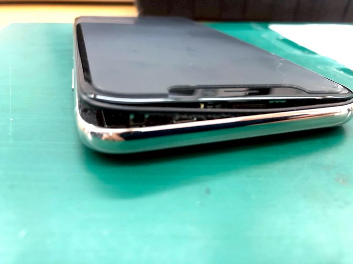 バッテリーの膨張により、パネルが持ち上げられた状態。