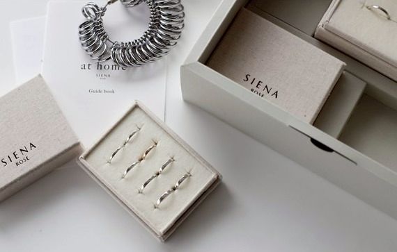 ブライダルリングサンプル無料貸出サービス「at home SIENAROSE」ではご自宅でSIENA ROSEのブライダルリングをじっくりとお試しいただけるサービスを行っております。お近くに店舗がない方、店舗への来店を控えたい方、店舗へ行く前に下見したい方…様々な方にご好評いただいております。