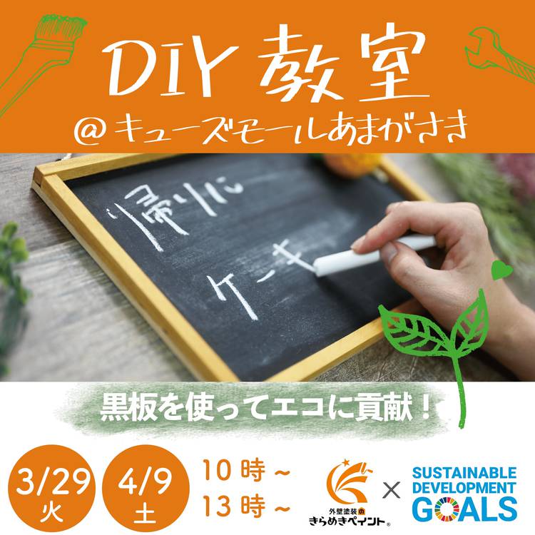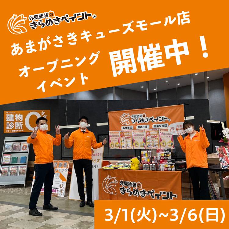 こんにちは!外壁塗装のきらめきペイントです 本日はイベントのお知らせです♪ 3月1日にオープンした『外壁塗装のきらめきペイント あまがさきキューズモール店』にて、DIY教室を開催いたします! ■開催店舗■ あまがさきキューズモール店 ■日時■ 3月29日(火) 4月9日(土) 共に下記時間で開催予定です👍 第一部:10:00~ 第二部:13:00~ ※2時間程度を想定しておりま...