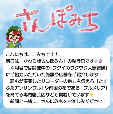 福井県内で中日新聞と日刊県民福井に折り込んでいる地域情報紙で創刊以来約20年あまりご愛読いただいています。