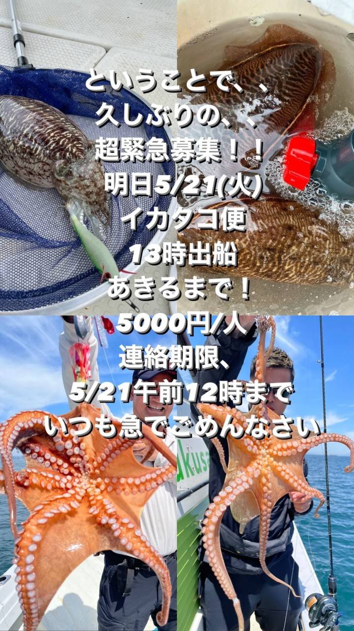 いつもお世話になります。 ふくさんLINEにご登録いただいている方全員に配信させていただきます。 LINE登録者限定おトク案内です! 今日も沖に出てましたが、走行中や日陰はちょっと肌寒いけど、日があたれば暖かい最高の季節です! 松山近海でも鯛の釣果が増えてきております! ということで、明日鯛ラバ・ひとつテンヤで出船しようかと考えております。 みなさまお忙しいとは思いますが、もしチャレンジ...