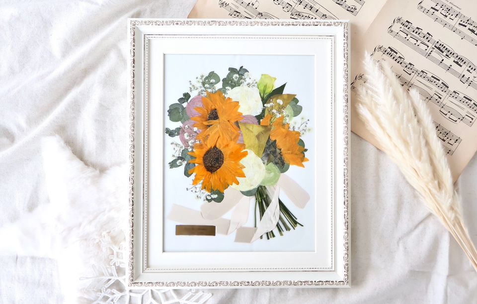 色々なお花が入った花束の押し花加工、額装See more