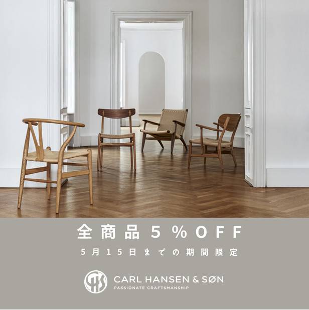 あのCARL HANSEN & SØNがお買い得です 2020年5月15日(金)までの間にご注文いただいた商品は全て5%OFFとさせていただきます。 ぜひこの機会にお求めくださいませ (※一部CH24 限定記念モデルとラグ、アウトドアシリーズのNew Priceと記載の商品は対象外となります。)