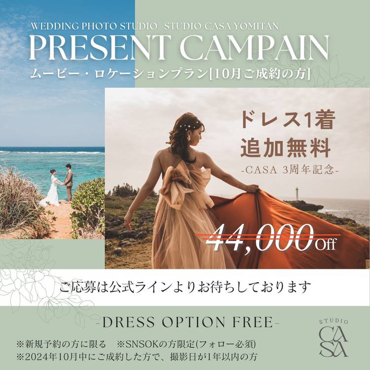 🎁10月ご成約キャンペーン🎁 通常よりも¥44,000もお得に🎵 CASAのすべてのムービープランが全て対象! この貴重な機会を、ぜひお見逃しなく! 2024年10月中にご成約いただいたお客様に、特別なプレゼントをご用意しました。 応募が多数の場合、定員に達し次第締め切らせていただきます。どうぞお早めにお申し込みください。 ======================== 【10月...