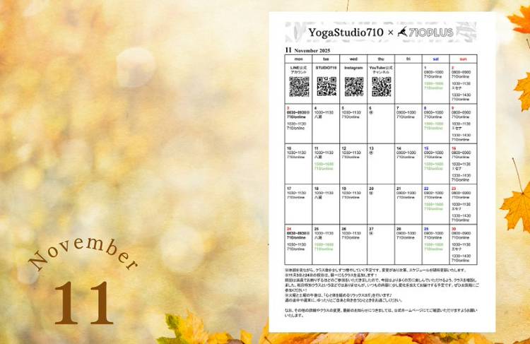 YOGASTUDIO710/710PLUS・・11月24日(月・振替休日)は、先月満員だったため“朝一クラス”をゆるっと追加いたします。内容はいつも通りですが、無理のない範囲で“もう一歩進んだポーズ”を少しだけ取り入れた気持ちよく動けるレッスンです。祝日の朝を心地よくスタートしに、ぜひお気軽にご参加ください🌿・・https://www.yogastudio710.com/20251121/ �...