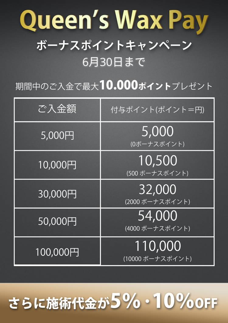 【年末年始営業のお知らせ】 お客様各位 平素は格別のご愛顧を賜り厚く御礼申し上げます。 2025年も残りわずかとなりました。 Queen’s Wax では年末年始の営業日を下記の通りとさせていただきます。 -サロン営業- ★営業最終日 2025年12月30日(火)10:00~22:00 ★営業開始日 2026年1月4日(日)10:00~22:00 -電話・メール受付- ★営業最終日 ...