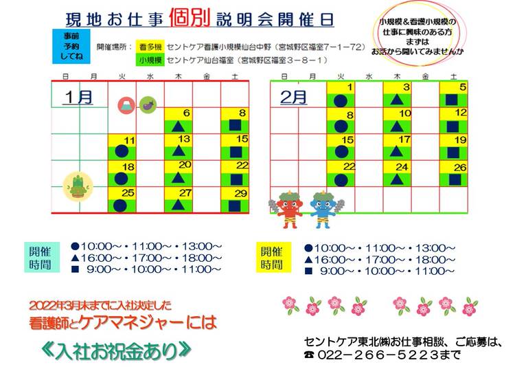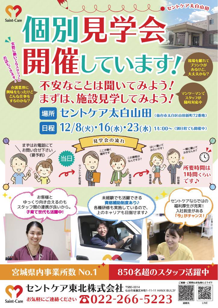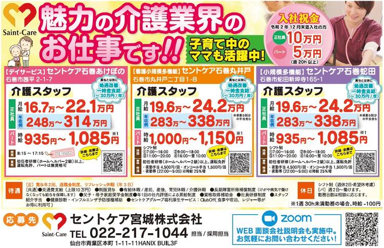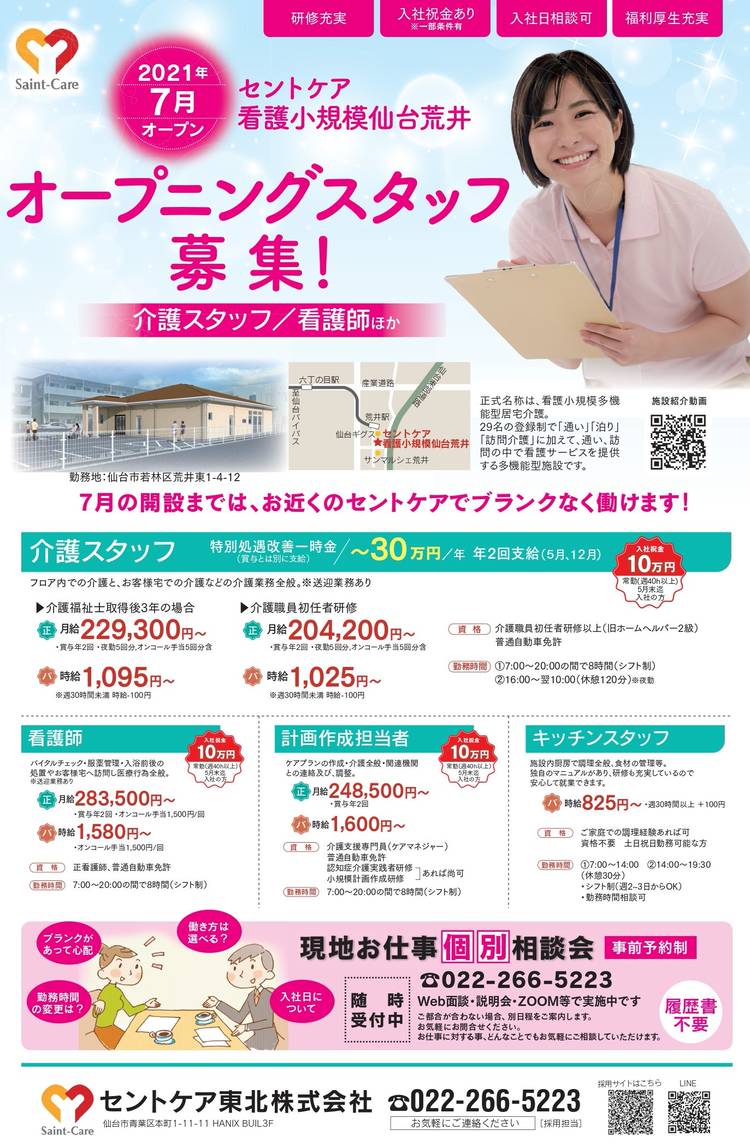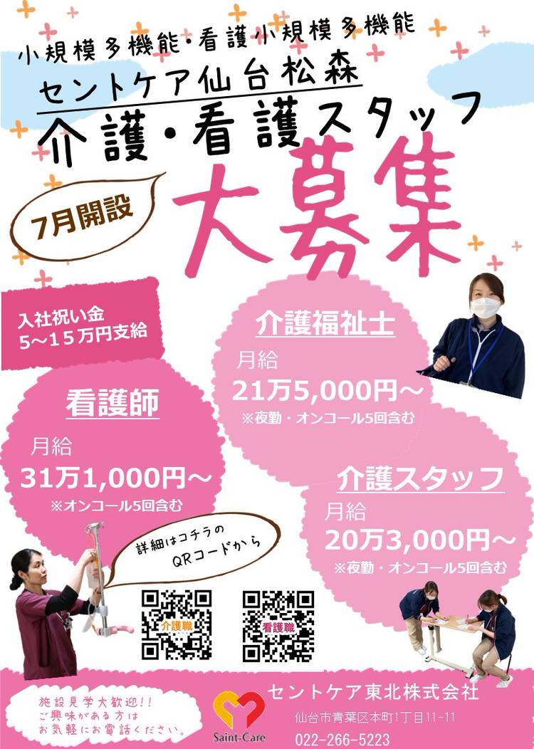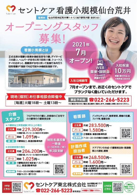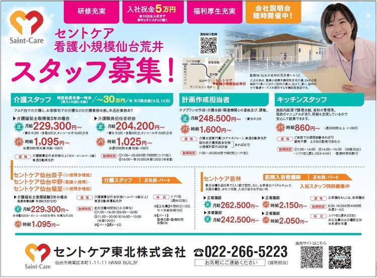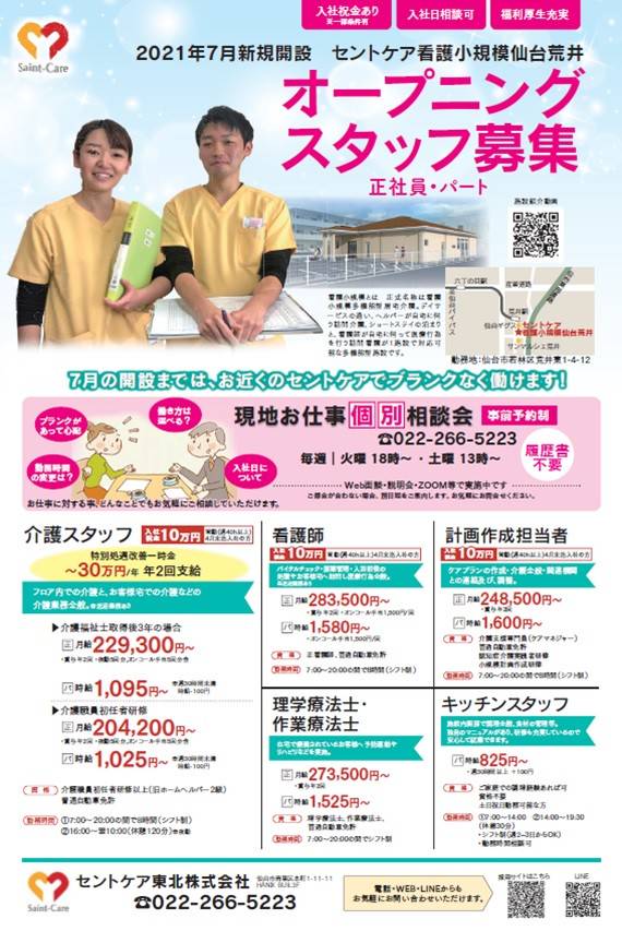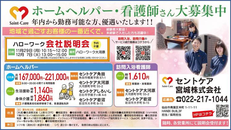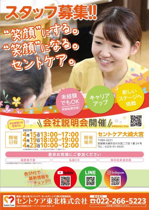 セントケア東北・宮城です 今回は問い合わせ急増中の 2職種のご紹介です! ①無資格未経験からスタート可能 太白営業所 福祉用具アドバイザー(要運転免許) https://saint-care-recruit.net/jobfind-pc/job/HokkaidoTohoku/48849 ②ホームヘルパー 週2時間~就業可! 太白・八木山営業所(要初任者研修以上・運転免許) https:...