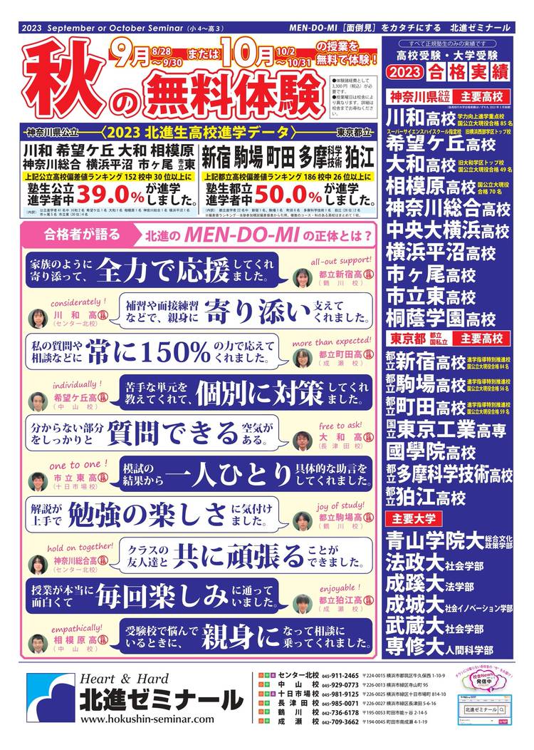 北進ゼミナール長津田校|小4~中3|少人数制集団指導