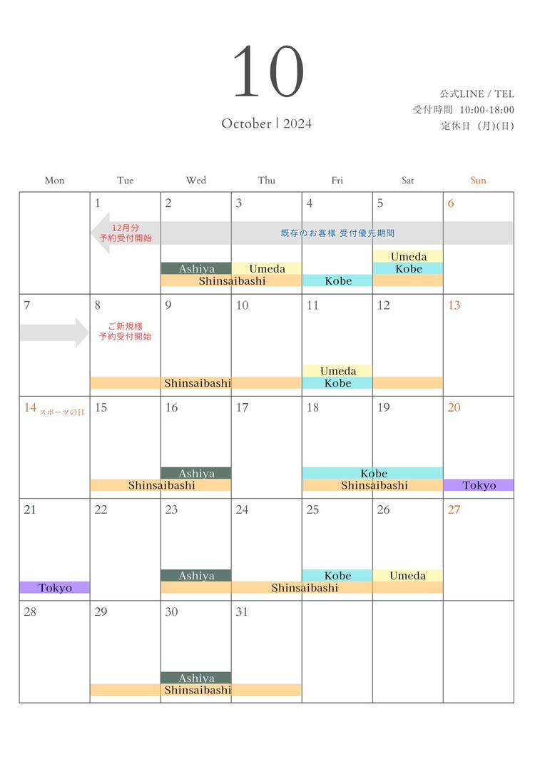 【10月キャンペーン日程のお知らせ】 ━━━━━━━━━━━━━ ◇リップ◇ 🗓【施術日/院】 ・10/01(水)神戸院 ・10/03(金)神戸院 ・10/15(水)神戸院 ・10/17(金)神戸院 ・10/29(水)神戸院・心斎橋院 ━━━━━━━━━━━━━ ◇アイライン上◇ 🗓【施術日/院】 ・10/02(木) 心斎橋院 ・10/15(水)心斎橋院・神戸院 ・10/29(水)心斎橋...