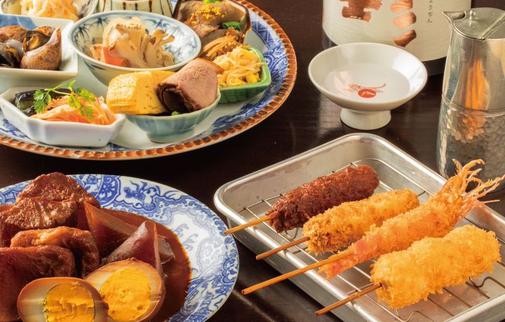 名古屋名物の味噌おでんや味噌串カツをはじめ、牛すじどて煮など愛知の郷土料理や旬の食材を使ったおばんざいと地酒長珍が味わえます。
