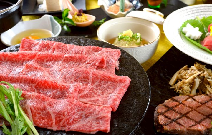 甲州牛や甲州ワイントン®など地元山梨の厳選された食材を使った会席料理をお愉しみください。 「甲州牛」とは? 山梨の豊かな自然の中で、丹念に育てられた黒毛和種肥育牛(肉質ランク4,5等級)。やわらかい肉質、鮮やかな肉色、豊かな風味の舌ざわりが特徴です。