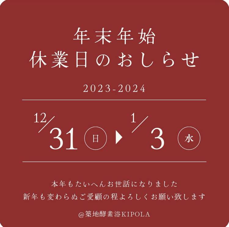 🌿秋の特別キャンペーン🌿 夏の疲れが残っていませんか? 季節の変わり目は、冷えや免疫力の低下、お肌の不調が出やすい時期です。 そんな時こそ「酵素浴」で体の芯からじんわり温め、 デトックス&リフレッシュ✨ 今回限りの特別プランをご用意しました! 先着30名さま限定ですので、お早めにご利用ください😊 -——————————— ☎️03-6264-1991 📮104-0045 東京都中央区...