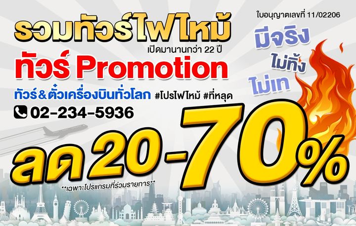 รวมทัวร์ไฟไหม้ ลด70%