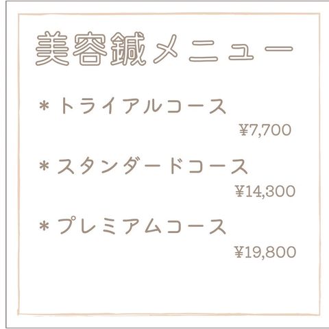お顔の美容鍼メインのメニューです! ご希望のメニューがございましたら、ご予約時お知らせください✨