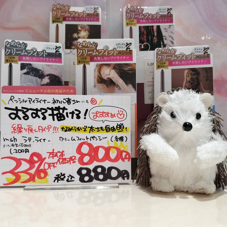 皆様こんにちは! セルレ ジ アウトレット湘南平塚店スタッフです(moon smile)(three hearts) ペンシルアイライナー初心者さんにも描きやすくて おすすめのアイライナーをご紹介させていただきます♪ やわらかくてするする描けるんです(*_ _)(heart) msh ラブライナー クリームフィットペンシル 各色 メーカー希望小売価格 各1,320円 → 33%OFF 各8...