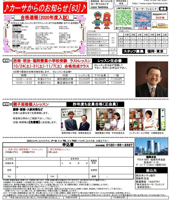 毎年、全国より通塾生を迎え、今年も受験合格者を多数輩出しています。長期滞在型ホテル内に所在しているため、館内のみの移動で、安全の確保と集中できる環境が整っていることも特徴です。ペーパー対策のみならず、願書の書き方、面接も徹底指導。受講のご相談は、ホームページ「お問合わせ」より。