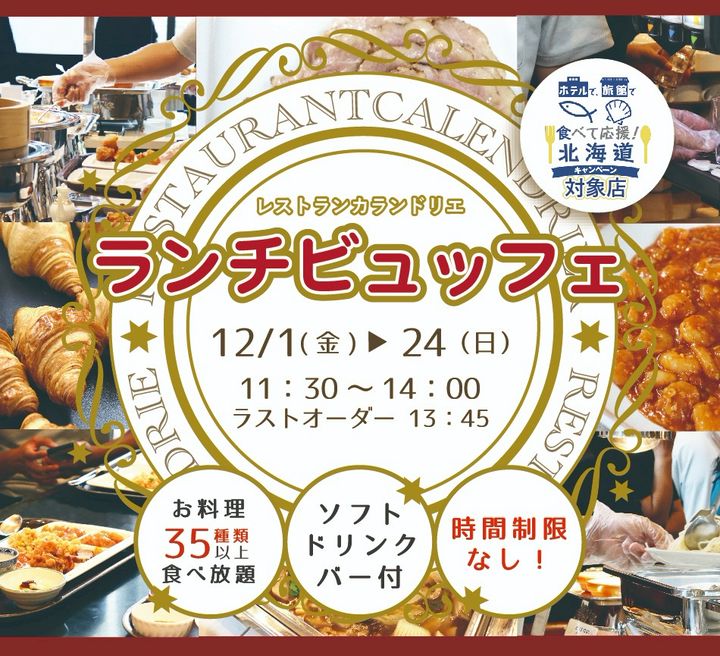 <要予約>3日間限定開催!ローストビーフ、海鮮とあひるの卵のブルスケッタやスモークダックの香揚げなどクリスマスらしいお料理含めた35品以上が90分食べ放題+ソフトドリンクバー付!さらに生ビールを含むアルコール類が特別価格1杯500円にてご提供!ぜひ皆様でご来館いただき、楽しいクリスマスをお過ごしください☆彡