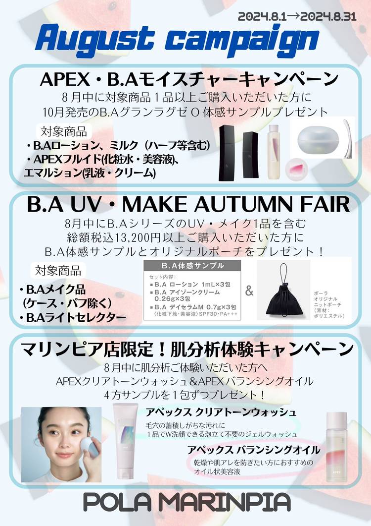 ***3月キャンペーンのお知らせ*** 🌷春のUV・メーク品ご購入キャンペーン🌸 期間中、必須対象商品1品以上を含む13,000円(税抜)以上ご購入で B.Aグランラグゼ O体感サンプル1回分(0.6g¥1,584相当)をプレゼント ※プレゼントのお渡しは4月下旬、 おひとり様1包まで、なくなり次第終了です。 🦋B.Aグランラグゼご購入キャンペーン💎 期間中に【B.Aグランラグ...