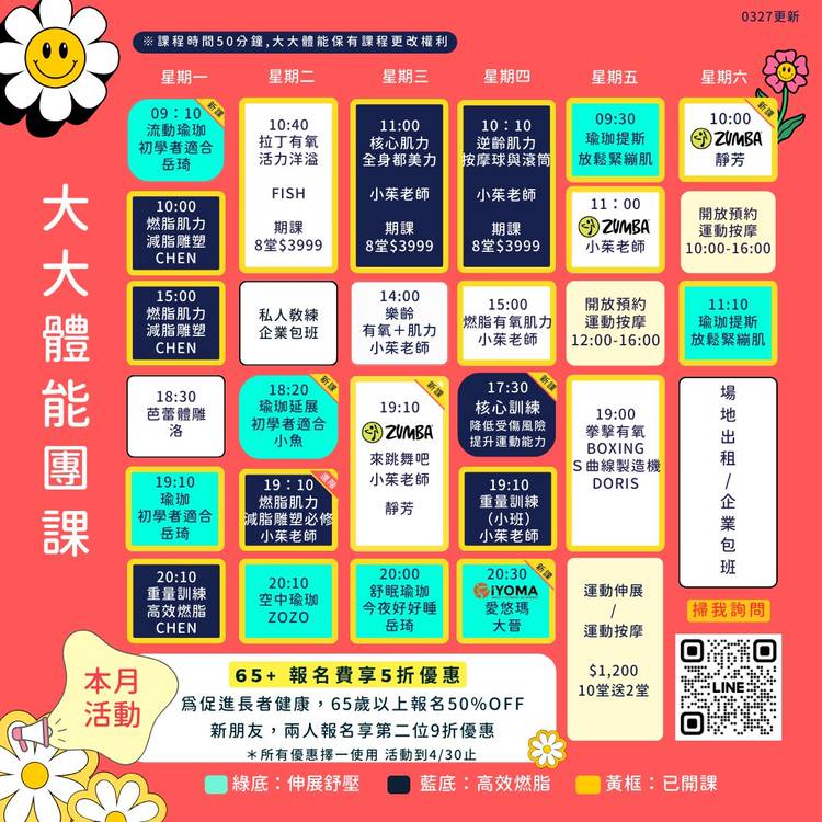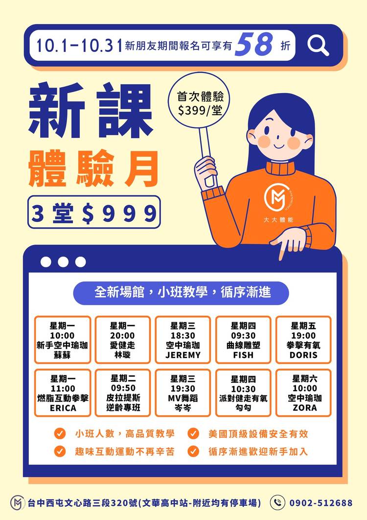 你以為運動只有「苦撐」嗎? 在【大大體能】這裡,每次上課都像和好友聚會,一起流汗、一起進步,還能享受超有趣的教練帶動! 還在等「有空再運動」?你知道健康其實可以很輕鬆養成,關鍵是—— 💕選對運動夥伴 💕找到好教練 🌟本月限時|團體課程體驗優惠499元 只要勇敢預約一次,你會發現—— 運動不孤單,健康變得很簡單! 👉還在觀望?下個走進教室的人就是你! 現在私訊預約,開始你的改變之路💪...