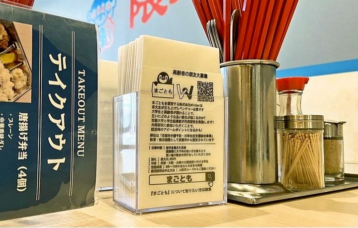 学生がよく利用する大学周辺の飲食店に、企業の求人情報を印刷した紙ナプキンを設置するサービスです。