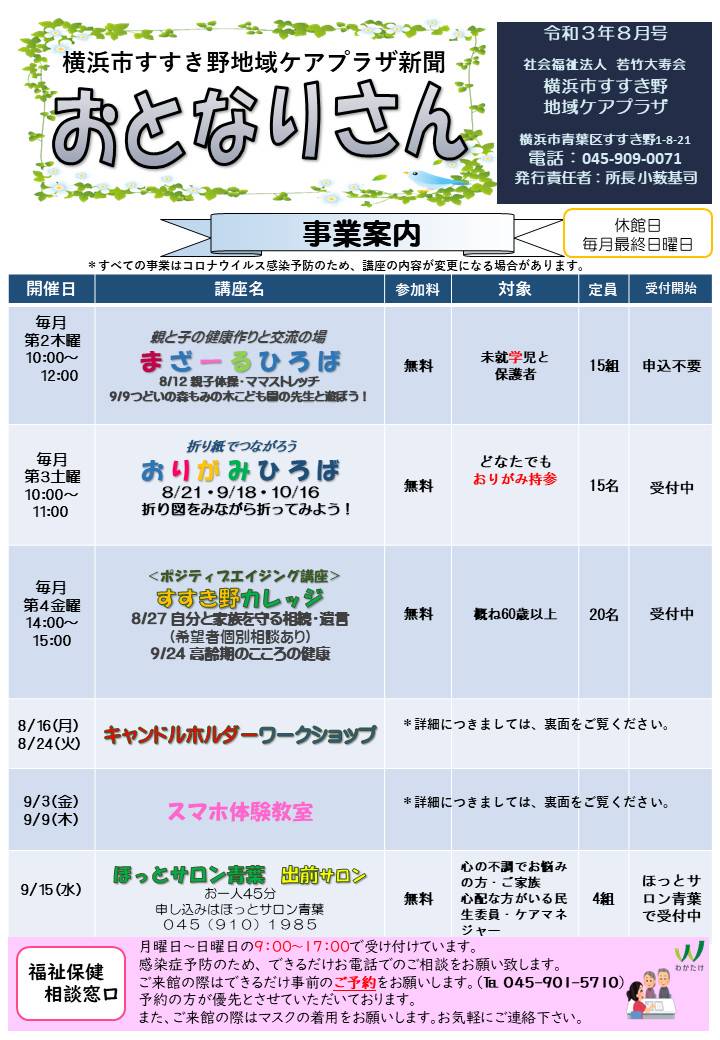 横浜市すすき野地域ケアプラザの公式LINEアカウントです。