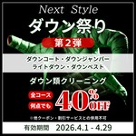 ダウン類クリーニング40%OFF
