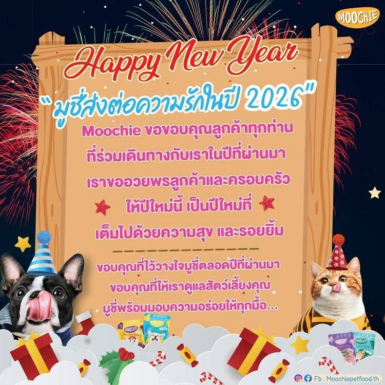 🎊✨ Happy New Year 2026 ✨🎊 มูชี่ขอส่งความสุข ความห่วงใย และสุขภาพที่ดี แด่ทุกบ้านที่อยู่เคียงข้างมูชี่เสมอมา🐶🐱 ขอให้ปีใหม่นี้เต็มไปด้วยรอยยิ้ม สุขภาพแข็งแรง และความสุขดี ๆ ในทุกวัน มีน้องหมาน้องแม...
