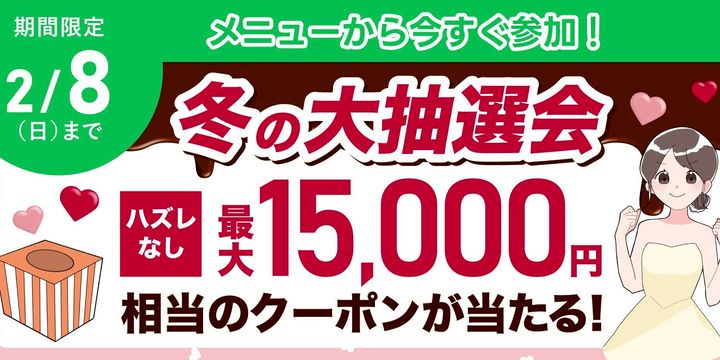 友だち限定で結婚式アイテムがお得に買うことができるクーポンが当たる大抽選会を開催!