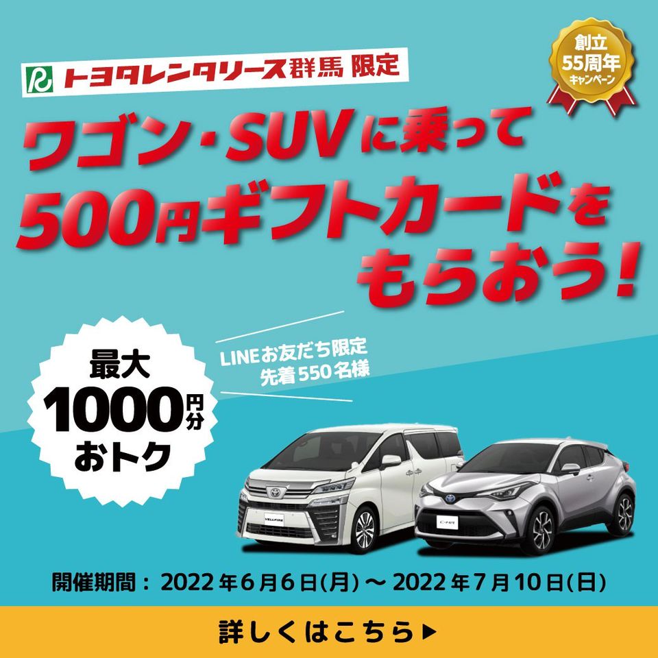 トヨタレンタリース群馬公式アカウントです