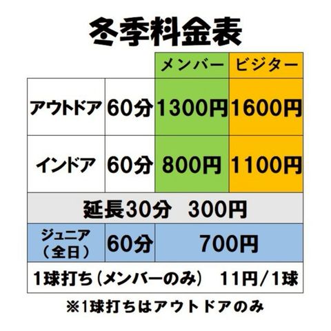 どちらも料金は無料となっています。Aジュニア用のクラブ、グローブともに貸し出しのものがございます。