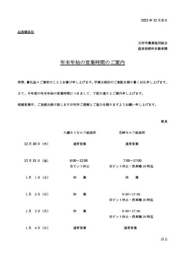 ホクレンSS 花畔セルフ