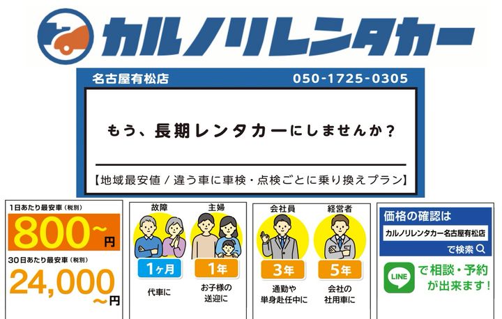 【7日〜1年以上】車借りるならカルノリ!