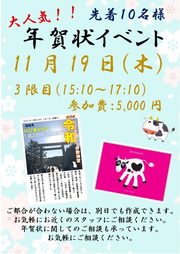 教室からのお知らせを主に配信いたします
