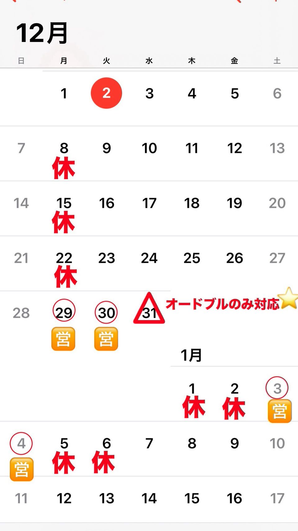年末年始などの繁忙期は開ける場合もあります。