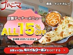 店舗ディナーメニューALL15%OFF