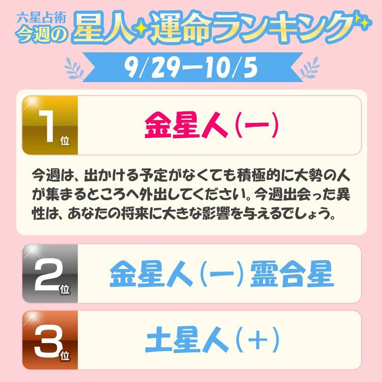 #細木数子六星占術 今週の 星人✡運気ランキングベスト3👑 あなたの星人は何位?気になる 4位~24位はコチラ👉http://bit.ly/4bTz8KT 公式LINEに登録すると無料で 自分の運勢を毎日確認できます✡ 👉https://lin.ee/3vK79H2 #細木かおり #運勢