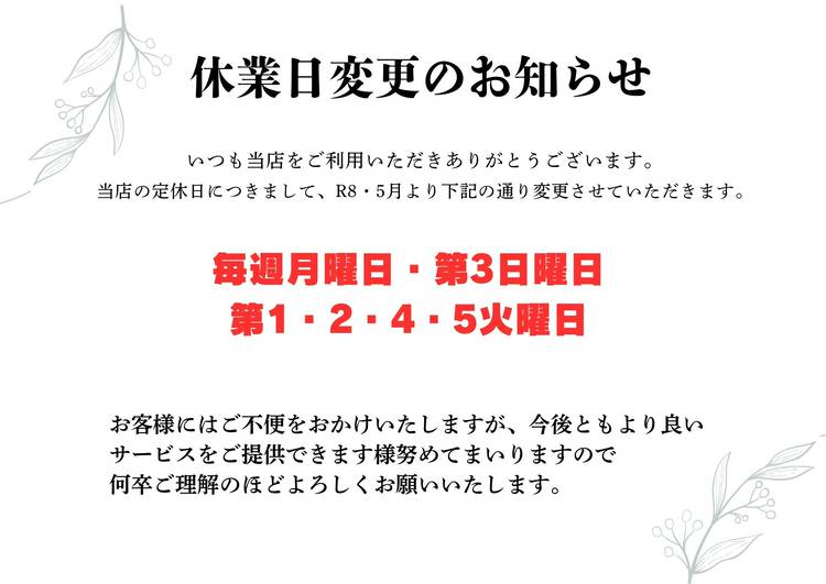 第3日曜日と第1火曜日はお休み