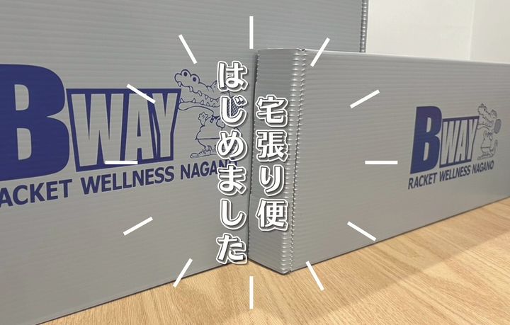 ①ラケットケースに、3点(ラケット・会員証・ストリングカード)を入れ、ポストに入れてください。