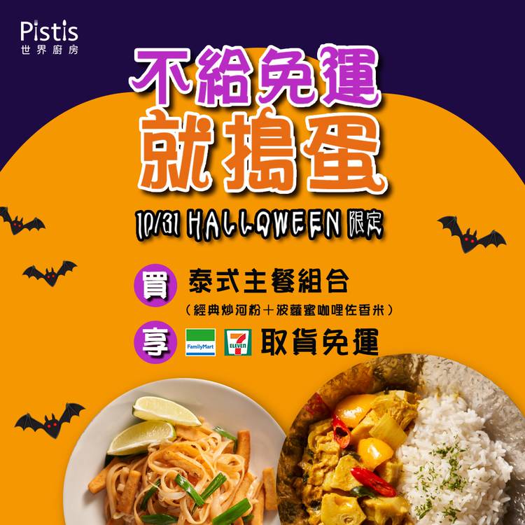 🍴 萬聖節一日限定🎃不搗蛋就送超商免運 10/31當日購買泰式超人氣主餐 #波蘿蜜咖哩佐香米 與 #經典炒河粉 組合 即可享有超商取貨運費0元唷! 活動搶先看▸https://bit.ly/3ErqVfB 偷偷說👻 單筆訂單只要有泰式主餐組合即可免運 可以跟其他商品一同訂購唷😍 🔔追蹤 Pistis世界廚房 不錯過任何好康消息 #Pistis世界廚房...