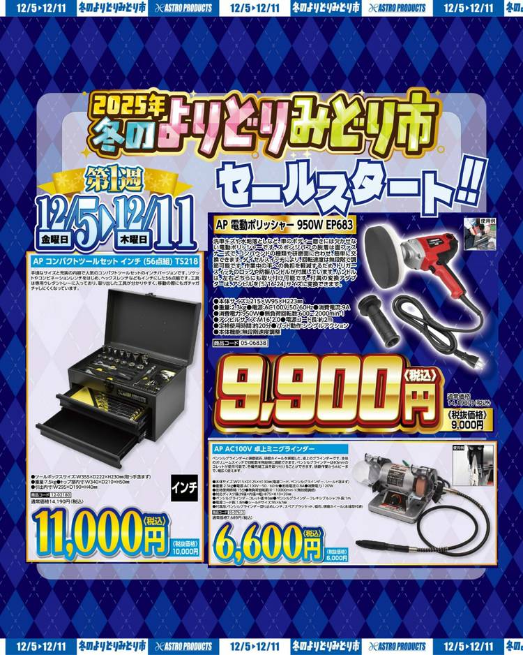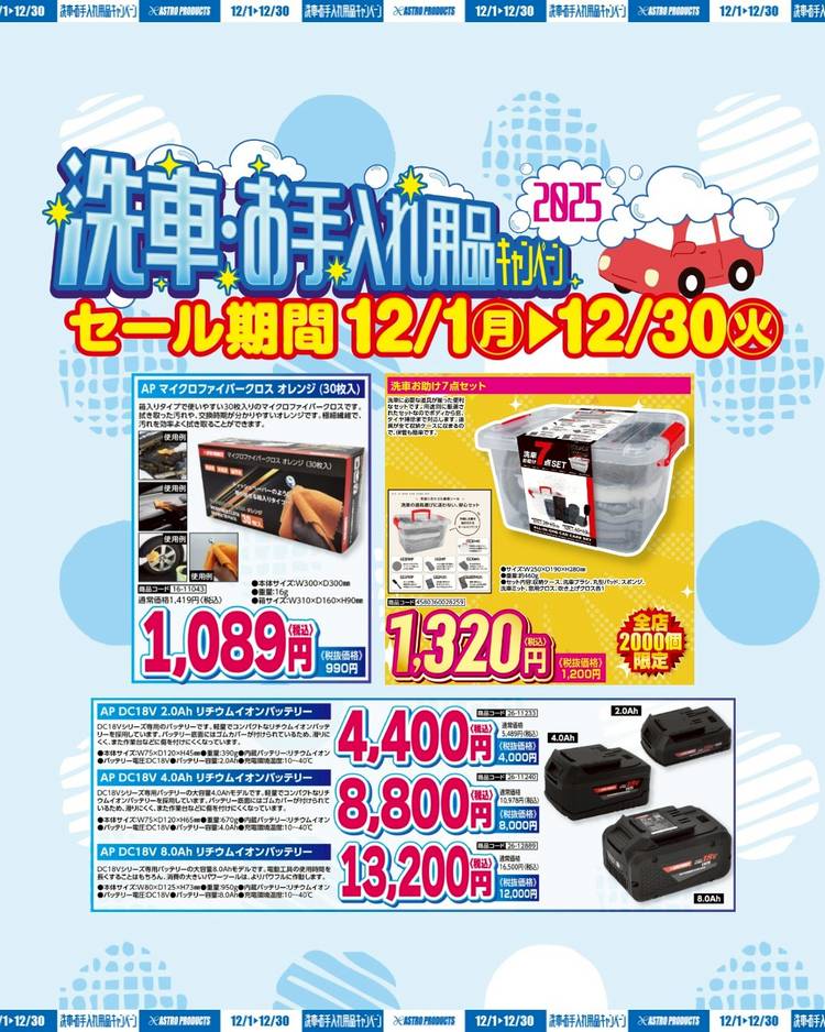 DC10.8Vシリーズの本体を購入すると バッテリーが「100円」で手に入る🎅⁉ 電動工具キャンペーン本日スタート🎉 インパクトレンチからポリッシャーまで 豊富なラインアップ😼✨✨ 充電器&収納バッグもセットでおトク🙌🏻 ⏰2025/12/31まで こちらから要チェック▶https://www.astro-p.co.jp/is/?q=2025%E5%B9%B412%E6%9C%8...