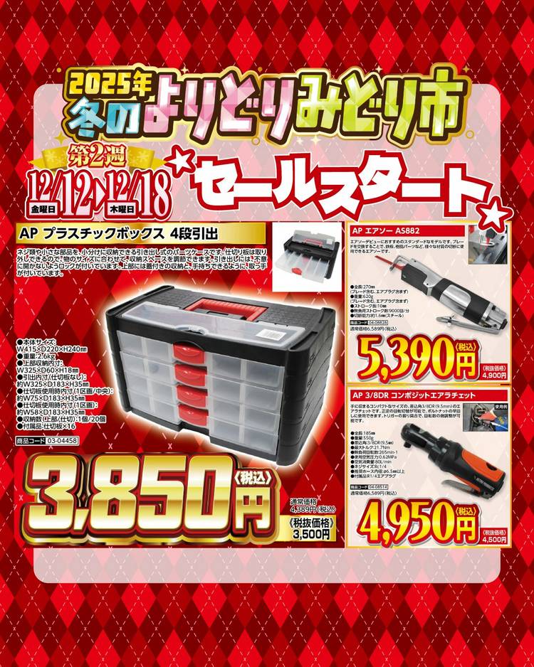 🔥新潟関屋店限定企画🔥 お客様へ感謝の気持ちを込めて、アプリ会員ポイントの付与率アップキャンペーンを12月も開催いたします! 開催日は毎月『4』がつく、4日、14日、24日の3日間! 4日、24日はポイントが4倍、14日はなんと10倍にアップ‼ 皆様のご来店お待ちしております! #インパクト #コンプレッサー #タイヤ交換 #パーツクリーナー