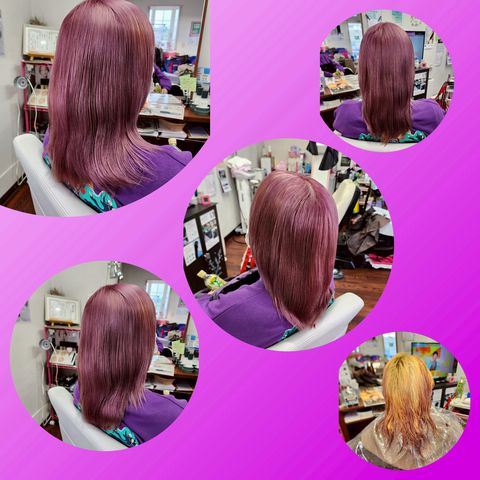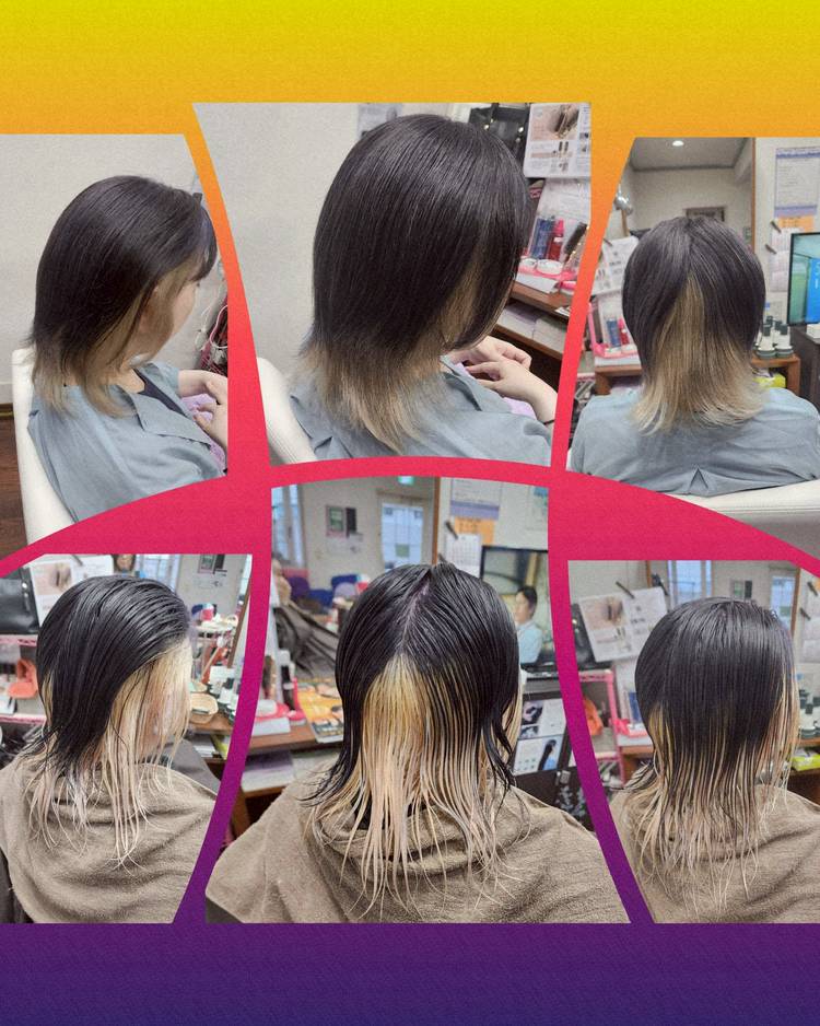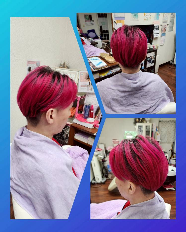 アンニョン 前回はヘアマニキュアブルー 頭皮が敏感なので頭皮の負担にならないように。 今回は普通明るめカラーでちょこっと、ハイライトカラー 徐々に色々カラー楽しみましょう!!😁