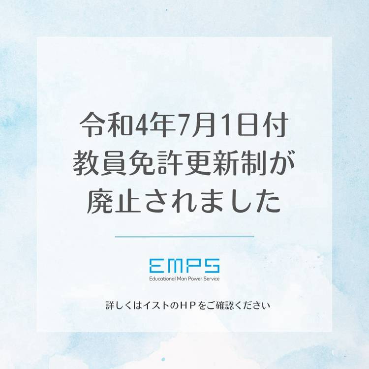 こんにちは!EMPSです(cony big smile) イストでは、登録者様、学校などご紹介先の双方に誠実でありたいという想いから、丁寧なヒアリングからスタートしております。 ご登録・掲載求人にご応募いただいた皆さまには、担当者よりお電話、状況によりご対面でヒアリングやご説明をさせていただいております。 当社のコーディネーターは精鋭ぞろいですので、疑問やご不安に思っていることなど是非お気軽に...