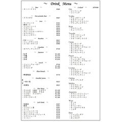 ドリンクのメニューになります。