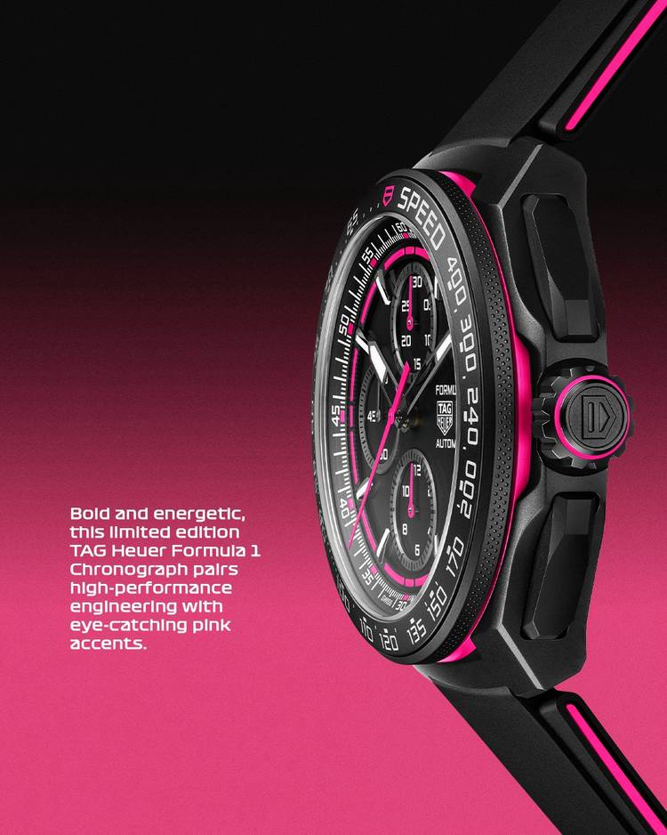 大胆なデザインを原動力に。 https://tag.hr/lv_f1pfp_251128 ─────────── 鮮やかなピンクのディテールが映える、新作・限定エディションの #タグホイヤー フォーミュラ1 クロノグラフは、エネルギッシュなスタイルと妥協なきパワーを融合。 パフォーマンスに最適化された設計で、44mmのブラックDLCコーティングを施したグレード2チタン製ケース、ブラックオパーリン...